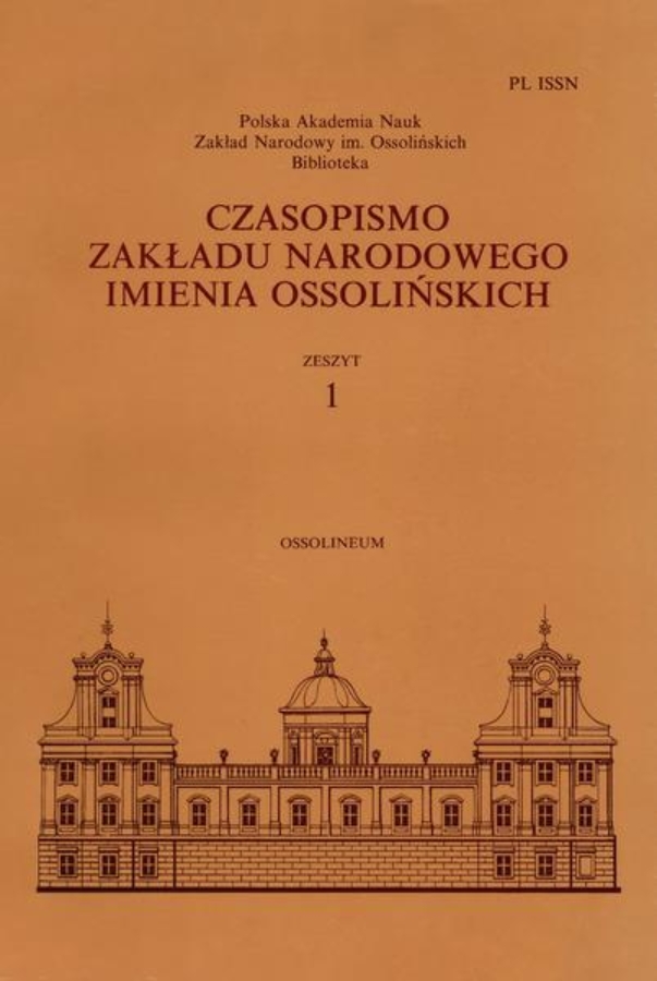 Title: Czasopismo Zakładu Narodowego imienia Ossolińskich. Zeszyt 1
